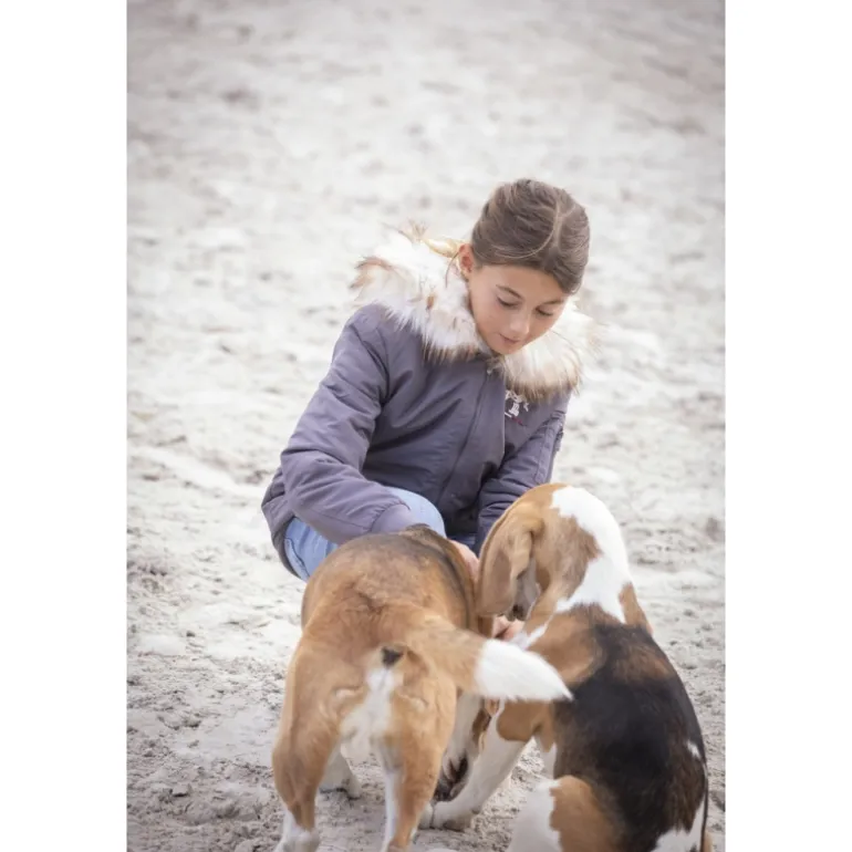 C’est un blouson type bombers très chaud qui est doublé d’une polaire ultra douce. Il doté d’une bande élastique sur le bas du blouson et les poignets pour limiter les entrées d’air froid. Il a une fermeture éclair centrale et deux poches boutonnées sur le devant. Une poche supplémentaire est située sur la manche gauche. La capuche est intégrée et entourée d’une belle et épaisse fausse fourrure. Ce blouson est déperlant mais pas imperméable.