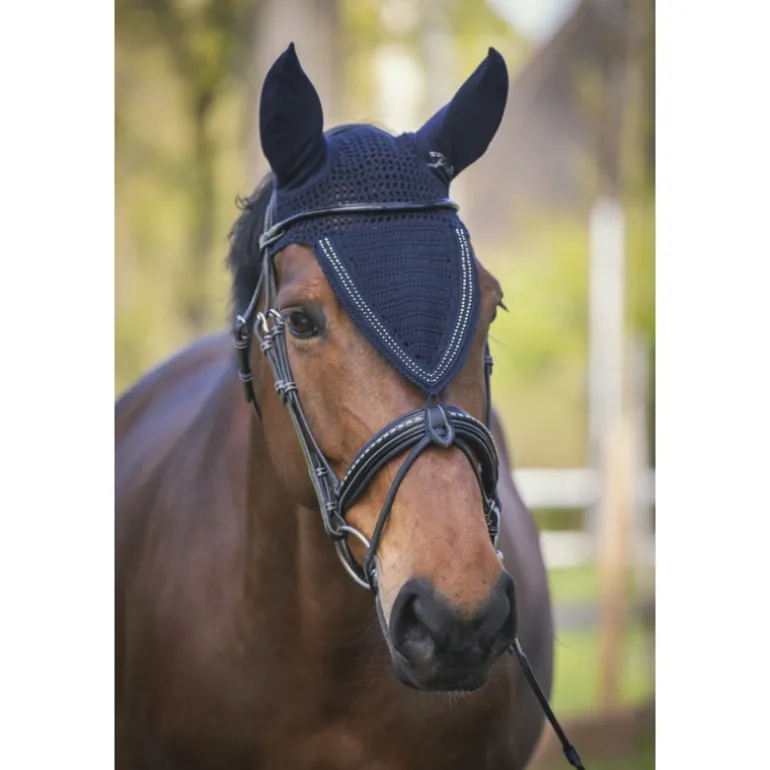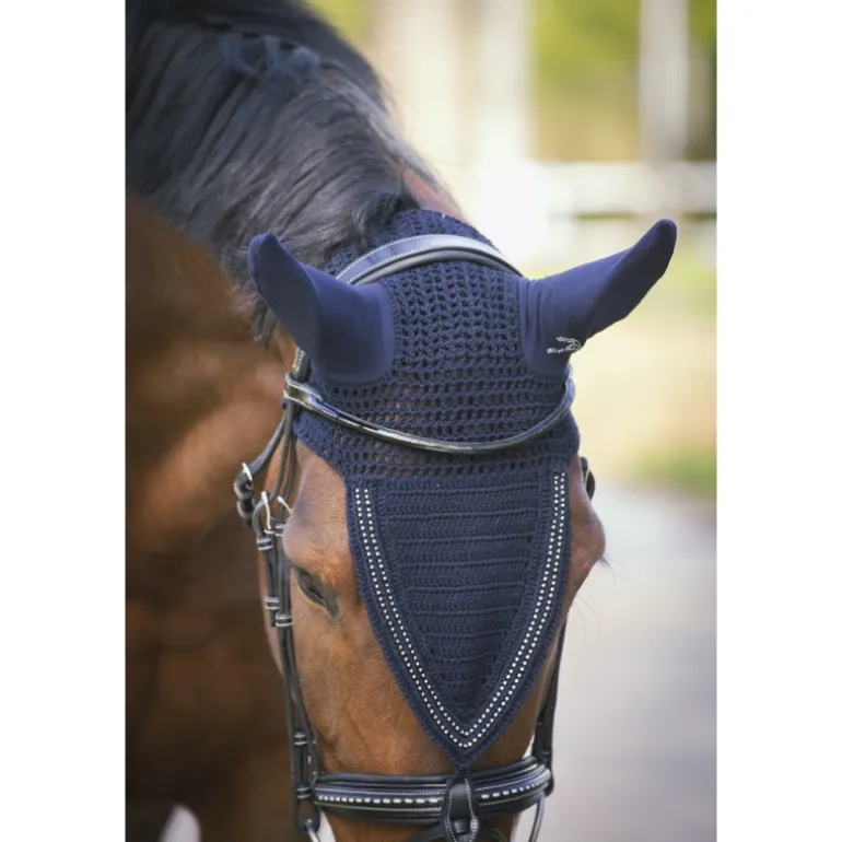 Ce modèle est idéal pour compléter un look chic et brillant en concours. Il favorise également la concentration du cheval en le protégeant des insectes et des intempéries.