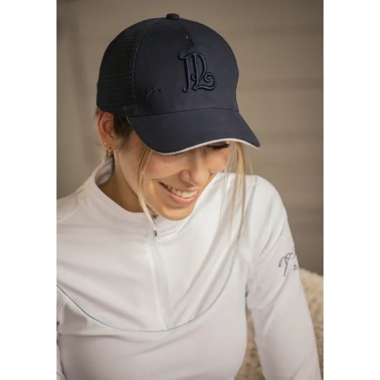 Le devant de la casquette porte les initiales « PL » ainsi qu’un petit logo du cheval Pénélope brodé ton sur ton.