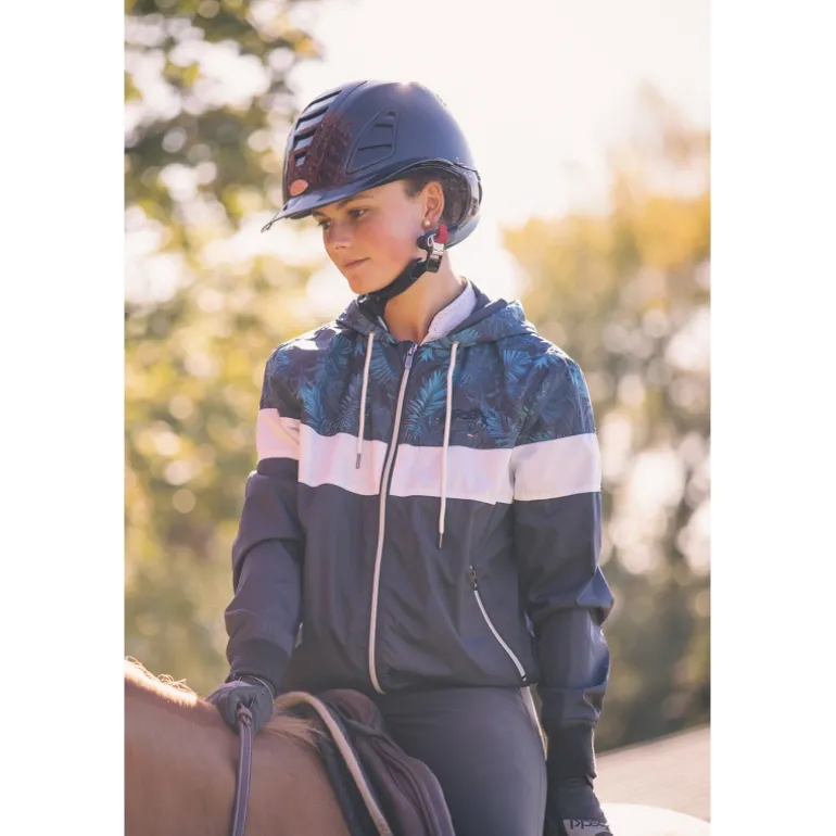 le Celecce revient avec un look original pour le printemps 2023 ! Son joli motif végétal va faire des envieux ! Le Celecce jungle est confectionné dans un tissu léger et doux, très agréable à porter. Il a une capuche intégrée bien enveloppante rehaussée d’un cordon blanc et possède deux poches zippées de chaque côté. Il se ferme à l’aide d’une fermeture éclair sur le devant et se resserre à la taille grâce à des cordons dotés d’arrêts. Il s’associe parfaitement avec un jean ou avec un pantalon d’équitation. Avec une coupe plutôt loose, il se porte un peu large et conviendra donc à de nombreuses morphologies.