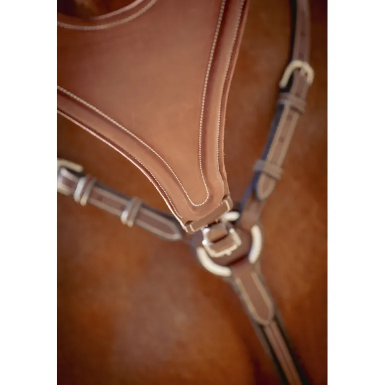 La flèche de martingale Bip plain élastique des Collections Pénélope est idéale pour canaliser certains chevaux. Elle permet de les garder dans un couloir de rênes ou de limiter les ports de tête trop hauts. Elle s’adapte facilement à tout type de collier de chasse et plus particulièrement à notre Martin-collier. Elle est composée d’une partie pleine en cuir de couleur noisette. Au niveau des anneaux, un lien élastique passe de chaque côté de la partie pleine et assure un confort dans le contact avec le cheval. Elle s’attache à un collier de chasse ou à notre Martin-collier grâce à une boucle réglable.