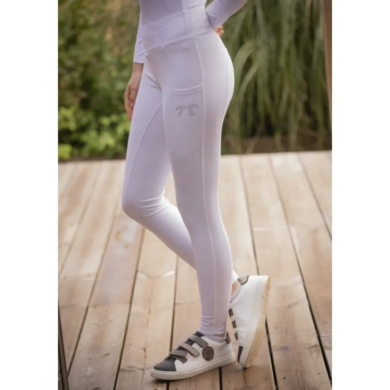 En haut de la jambe gauche, le logo Pénélope apparaît en strass et ajoute une touche girly à ce legging d’équitation.