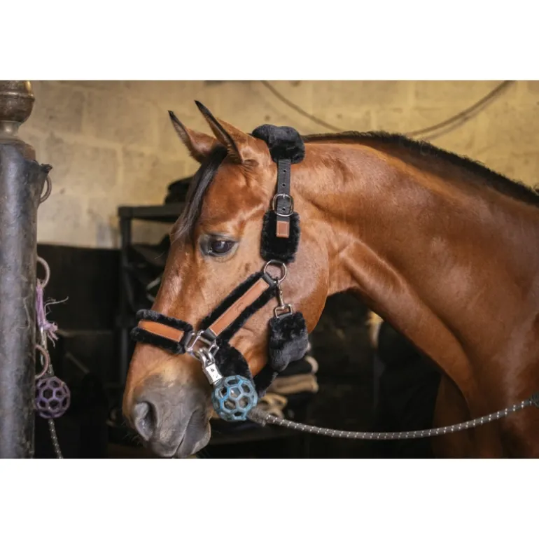 Un licol qui pense confort et esthétisme pour votre cheval. Le cuir sur la muserolle et sur les deux montants de chaque côté est entouré d’un véritable faux-mouton. Le reste du licol est en nylon, également recouvert par du mouton synthétique. Il est très souple et agréable à manipuler. Il est idéal pour faire voyager votre cheval à l’attache avec un maximum de confort ou pour des séances de pansage au top de la douceur !
