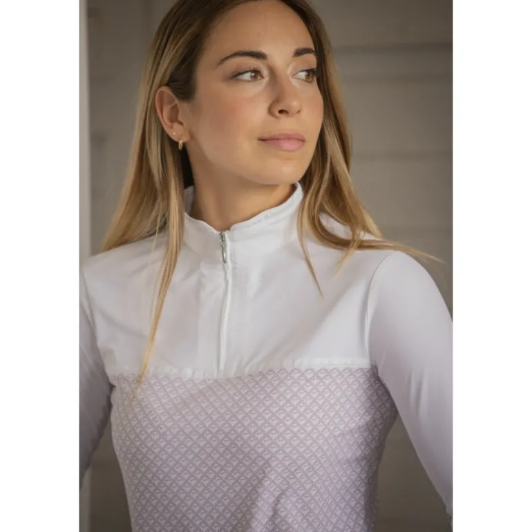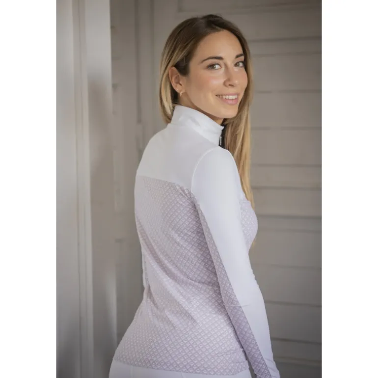 Polo de Concours Debbie Manches Longues – Blanc & Rose
