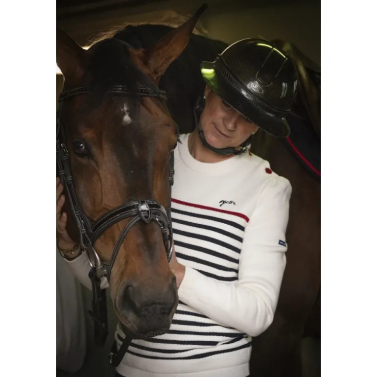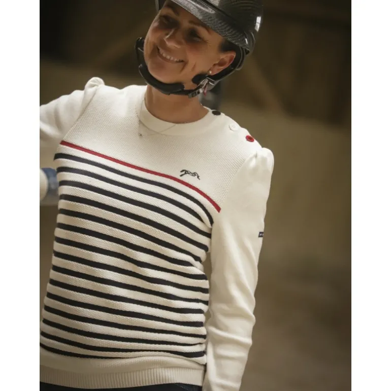 Pull Maëlle – Écru Marine & Rouge