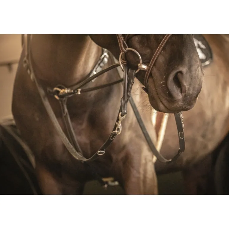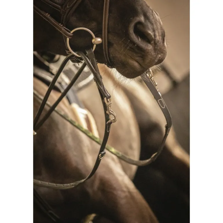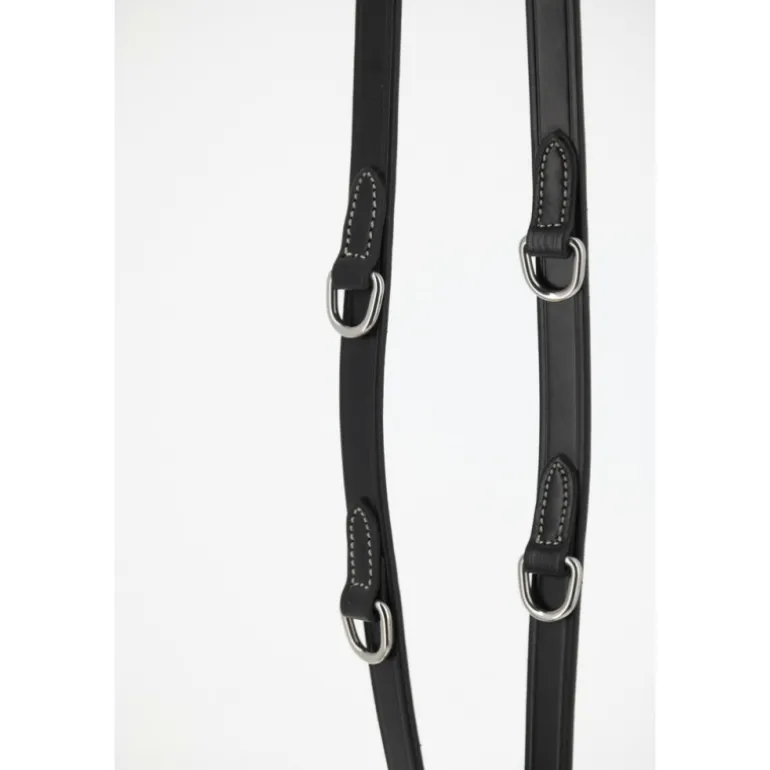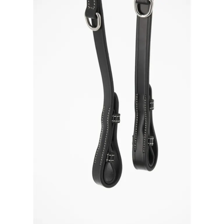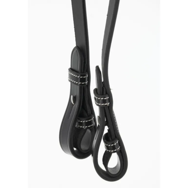 Rênes Howlett Pénélope en cuir et caoutchouc dotées de deux anneaux permettant deux réglages différents. Elles s’utilisent parfaitement bien avec notre Martin Collier.