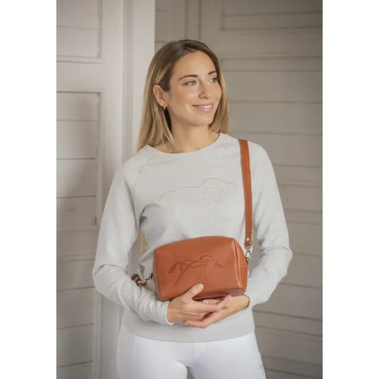 Petit sac à main rectangulaire Pénélope Laly. Il est zippé sur le dessus et confectionné dans un joli cuir grainé cognac rehaussé d’un « piping » doré sur la bandoulière et la poche arrière. Au centre, sur la face extérieure du sac, on trouve le double logo Pénélope et celui de l’amitié, tous les deux embossés. Ce sac est parfait pour transporter tout le petit nécessaire d’une femme au quotidien.