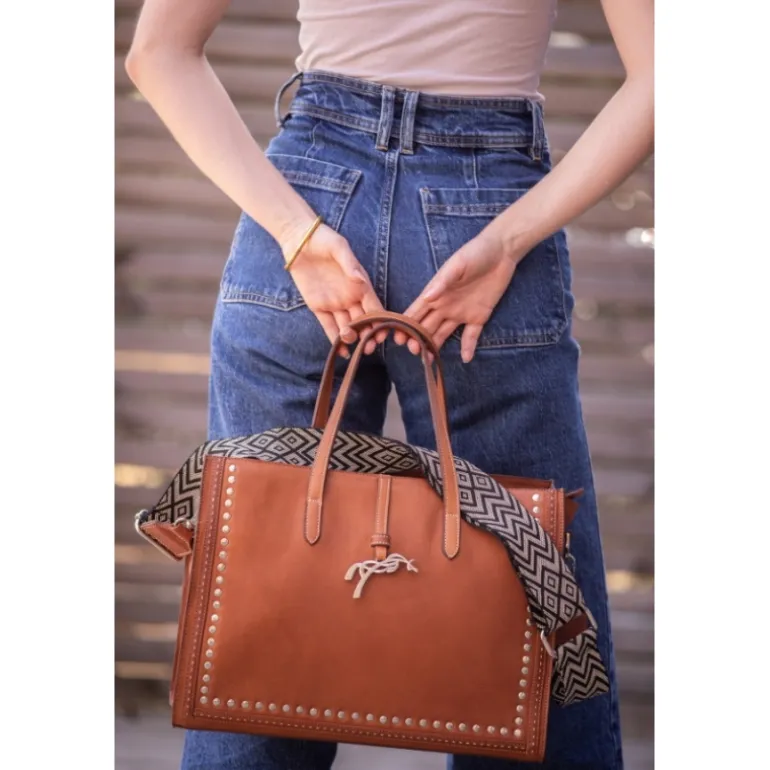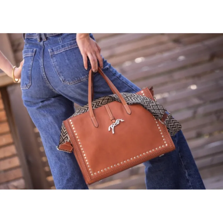 Le sac à main Naily Romane est confectionné dans un cuir lisse très chic décoré d’un galon point sellier mat ton sur ton et d’un rang de clous plats. Il est doté de deux petites anses cousues qui permettent un porté à la main ou sur le bras. Le sac Naily Romane est également doté d’une grande anse réglable à motifs chevrons qui permet un porté à l’épaule ou en bandoulière. Il se ferme par un zip central et possède une poche intérieure plaquée et zippée pour plus de praticité. Enfin, sur l’extérieur, un logo Pénélope argenté est suspendu par un lien surpiqué et donne une joli touche équestre à ce sac à main.