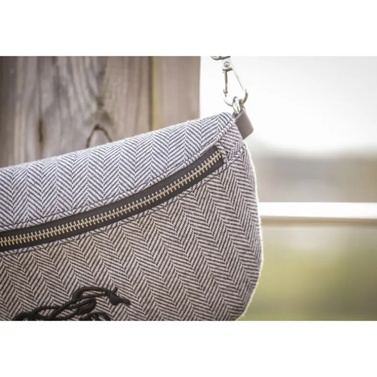 C’est LE sac de la saison ! Elle se porte au bras ou en bandoulière et permet de garder les mains libres. Elle est composée d’un grand zip et d’une poche intégrée zippée à l’arrière. A l’intérieur, une autre poche plate zippée permet de ranger de plus petites choses. La banane Chevron Pénélope est très pratique pour emporter avec soi tout le petit nécessaire du quotidien : porte-monnaie, petit portefeuille, clefs, téléphone portable etc. Elle également dotée d’une grande bandoulière en nylon réglable et amovible qui s’attache et se détache grâce à deux mousquetons.