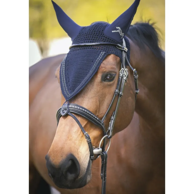 Ce modèle est idéal pour compléter un look chic et brillant en concours. Il favorise également la concentration du cheval en le protégeant des insectes et des intempéries.