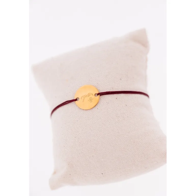 Bracelet Pénélope cordon Zoé délicatement dessiné avec son cordon très fin rehaussé par une médaille dorée sur laquelle on trouve le petit cheval Pénélope incrusté.
