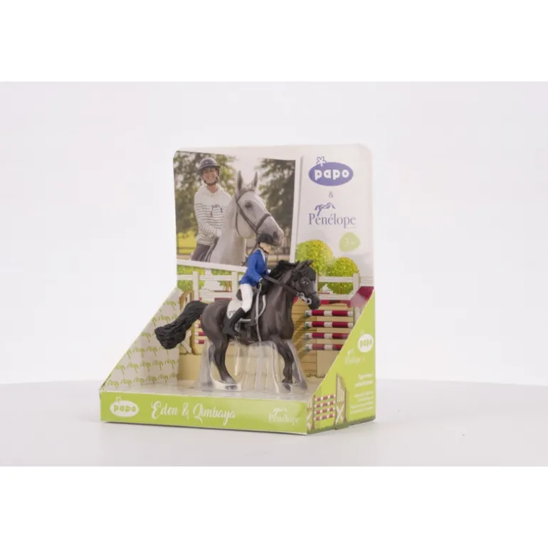 La figurine Eden et Quimbaya fait partie de la gamme Papo x Pénélope au côté de trois autres modèles : Pénélope & Blacky, Pénélope & Flora et Pénélpope & Mylord.