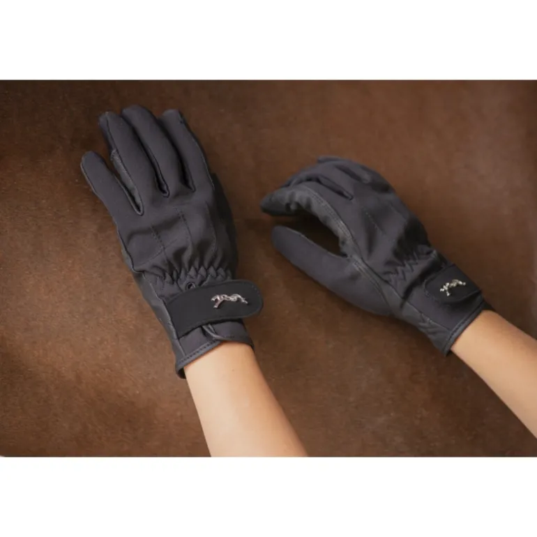 Gants d’équitation Hiver Eden by Pénélope pensés pour toutes les petites cavalières soucieuses de monter à cheval en protégeant leurs mains avec confort et élégance. Ils sont bien doublés pour garder vos mains au chaud l’hiver. Ils restent toujours léger à porter grâce à leur dessus de main ultra-stretch qui assure une liberté de mouvement optimale. L’intérieur de la main est antidérapant et l’extrémité de l’index et du pouce est recouverte d’un tissu « Digital Touch« . Les gants Hiver se ferment par une patte surmontée d’une breloque Pénélope.