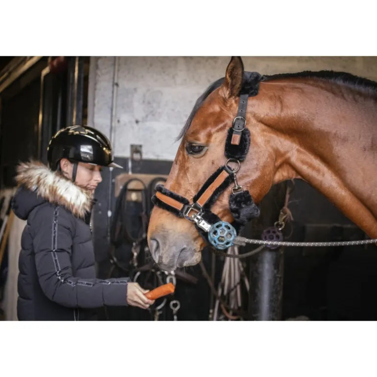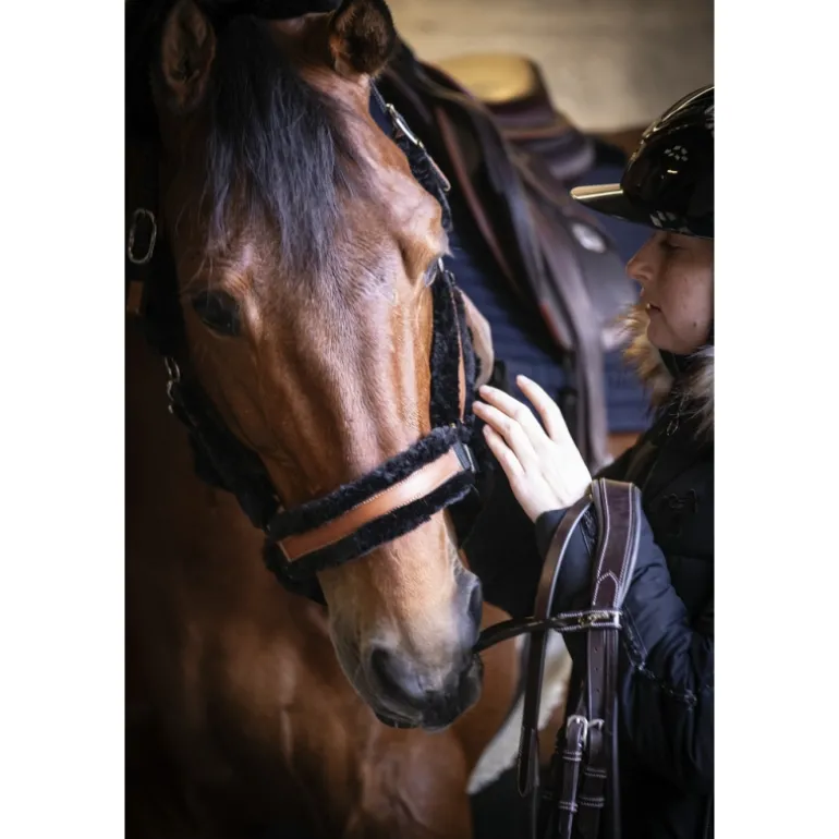 Un licol qui pense confort et esthétisme pour votre cheval. Le cuir sur la muserolle et sur les deux montants de chaque côté est entouré d’un véritable faux-mouton. Le reste du licol est en nylon, également recouvert par du mouton synthétique. Il est très souple et agréable à manipuler. Il est idéal pour faire voyager votre cheval à l’attache avec un maximum de confort ou pour des séances de pansage au top de la douceur !