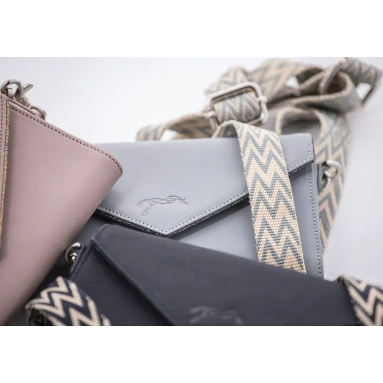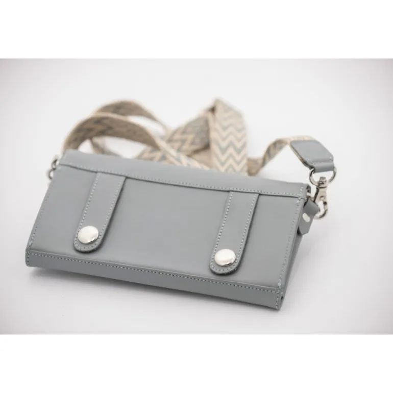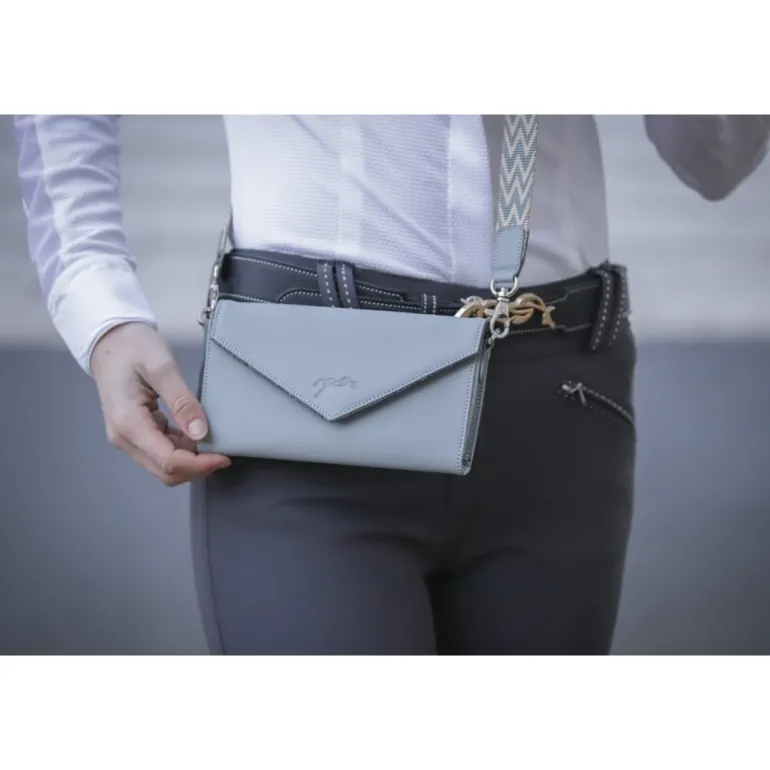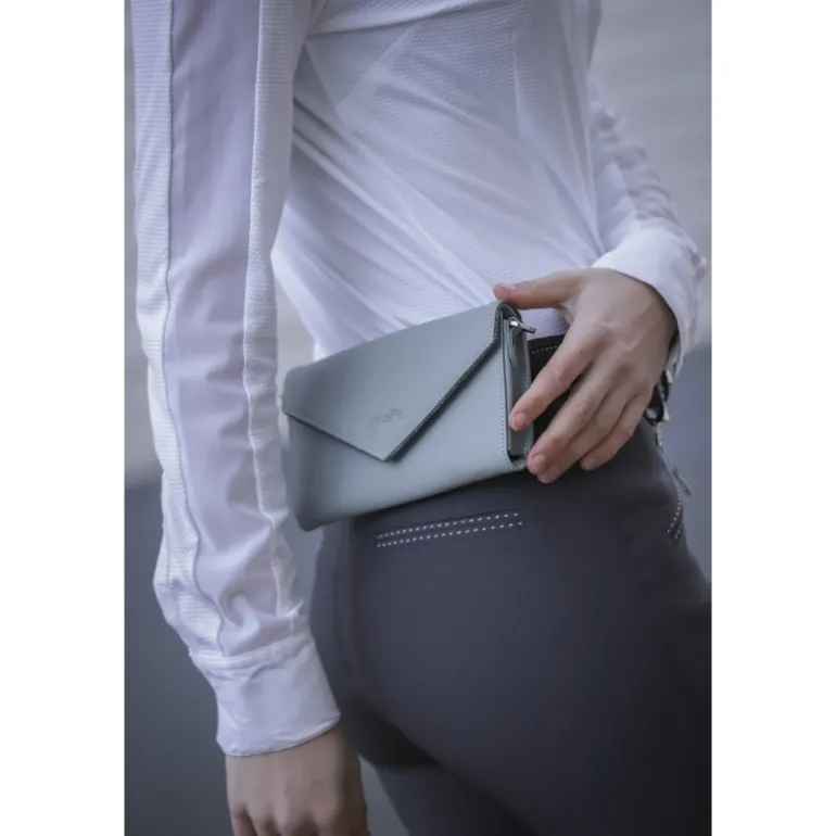 Pochette pour téléphone en cuir à accrocher sur la ceinture ou à porter en bandoulière. Ultra pratique pour emporter son téléphone portable partout avec soi, elle s’accroche à la ceinture grâce à un système de pattes avec des pressions ou se porte en bandoulière grâce à une jolie lanière large et plate aux motifs chevrons. Elle se ferme à l’avant, grâce à un bouton pression placé sous un rabat en V embossé du logo Pénélope. Sur ce rabat, un passepoil pailleté assorti vient rehausser sa forme en V.