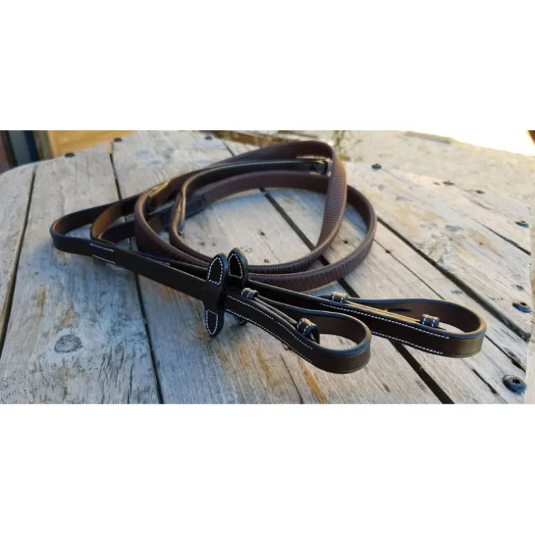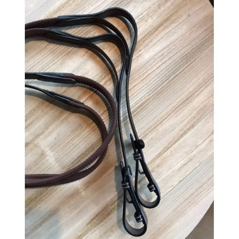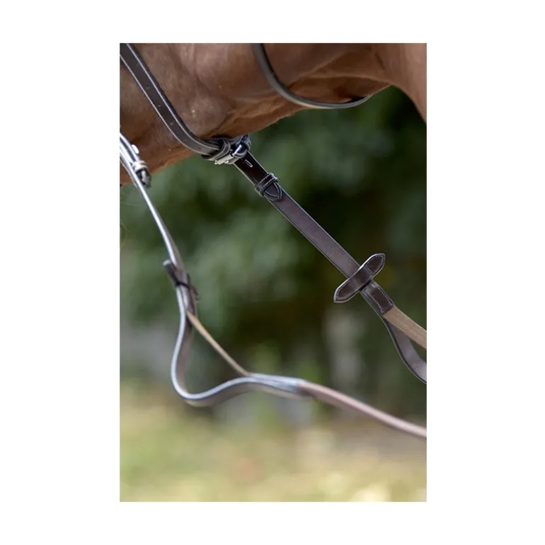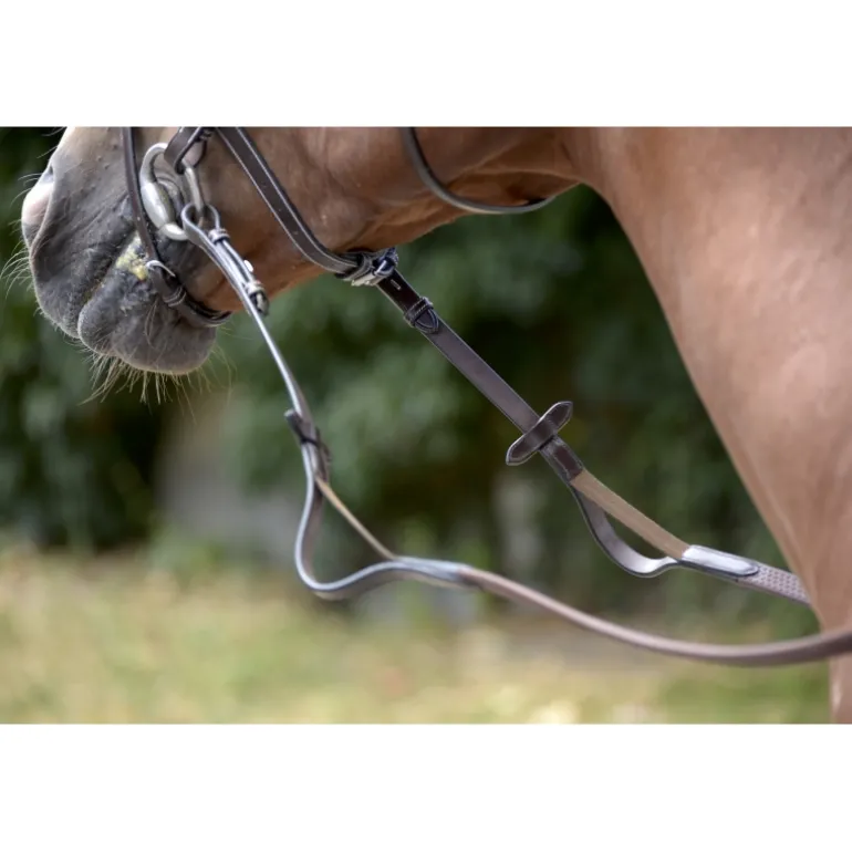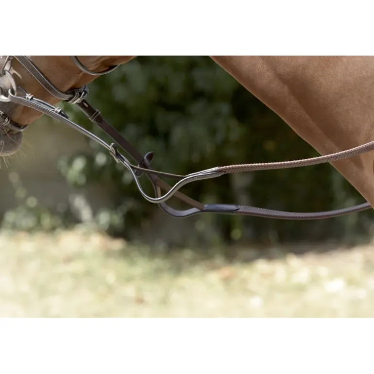 Ces rênes pensées par Pénélope Leprévost sont conçues pour conserver un contact constant avec la bouche du cheval. Idéales pour les chevaux ayant tendance à lâcher le mors, à refuser le contact avec la main du cavalier. Particulièrement adaptées pour les jeunes chevaux, pour leur apprendre à se tendre de façon continue et juste sur leur mors.