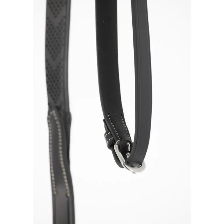 Rênes Howlett Pénélope en cuir et caoutchouc dotées de deux anneaux permettant deux réglages différents. Elles s’utilisent parfaitement bien avec notre Martin Collier.