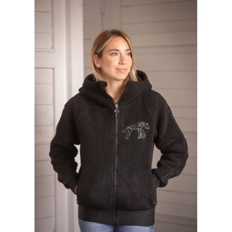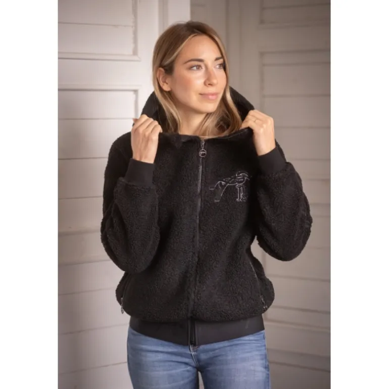 Le sweat Miwi des Collections Pénélope est confectionné dans une polaire à la bouclette épaisse et ultra-douce. Il est particulièrement confortable et agréable à porter aux écuries comme en ville.