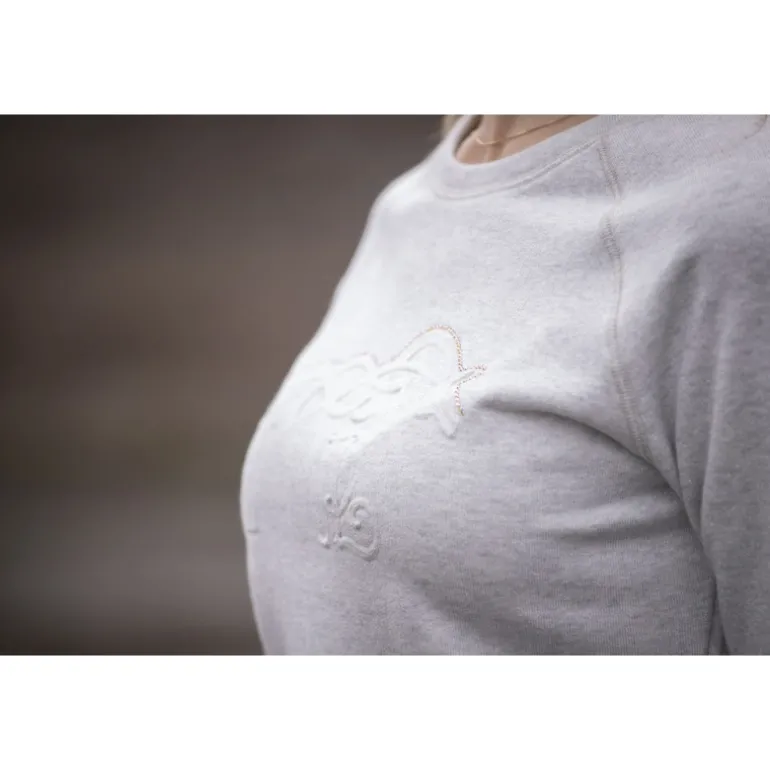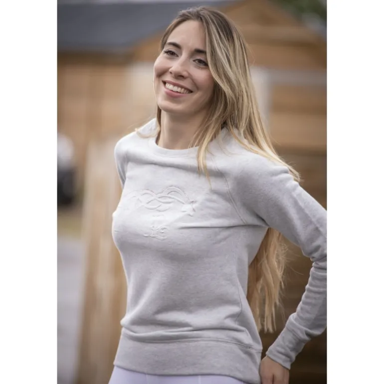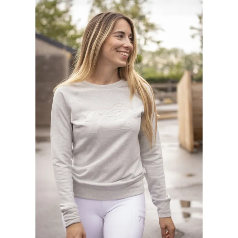 Le Sweat Pénélope Ully a un col rond très féminin, qui dessine un joli port de tête. Il est doté d’un marquage du logo Pénélope ton sur ton en 3D, surmonté d’un rang de strass. Sobre et chic à la fois, il convient aussi bien à la vie aux écuries qu’en ville.