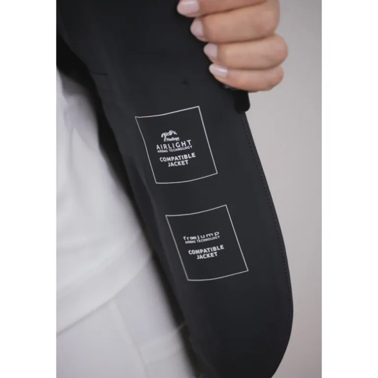 La veste de concours Calistus des Collections Pénélope est compatible avec notre airbag Airlight 2 mais aussi avec l’airbag Freejump.